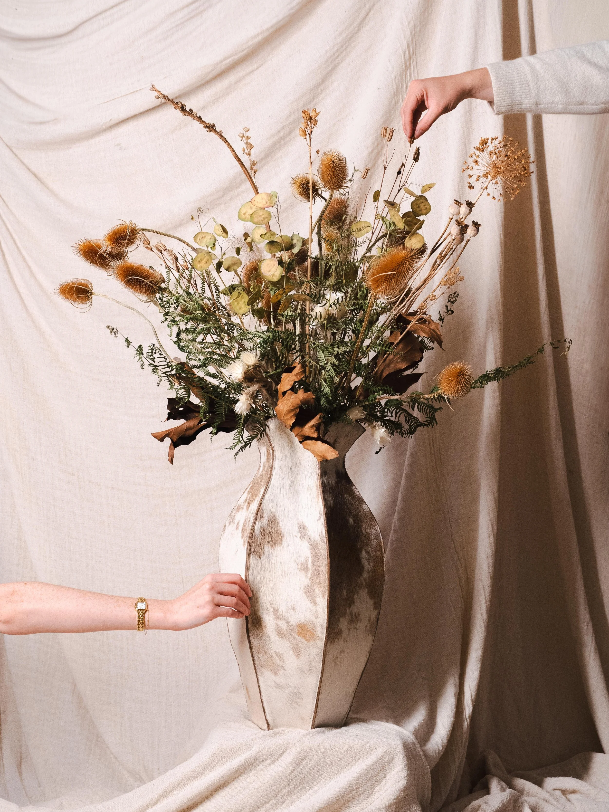 The majority of fresh flowers are stereotypically kept in plastic wrapping whereas with dried flowers & botanicals they are stored in paper, reducing plastic consumption and waste.